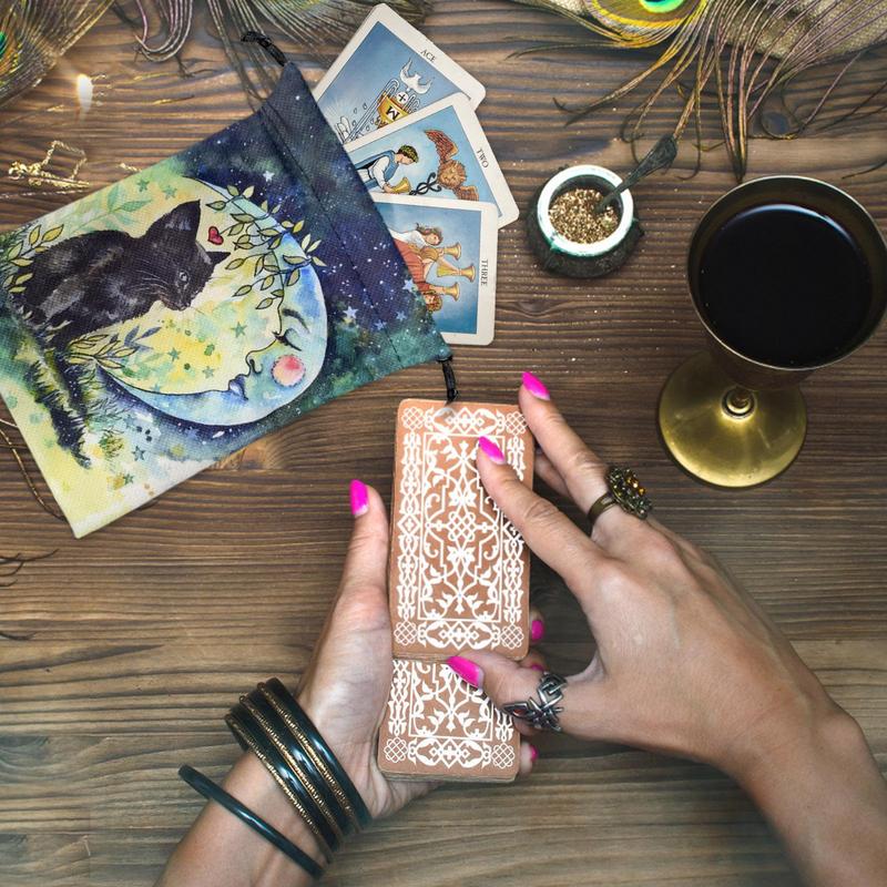 SCHWARZE - KATZE - TAROT KARTENTASCHE / STILVOLLE TAROTTASCHE MIT KORDELZUG