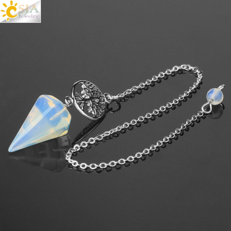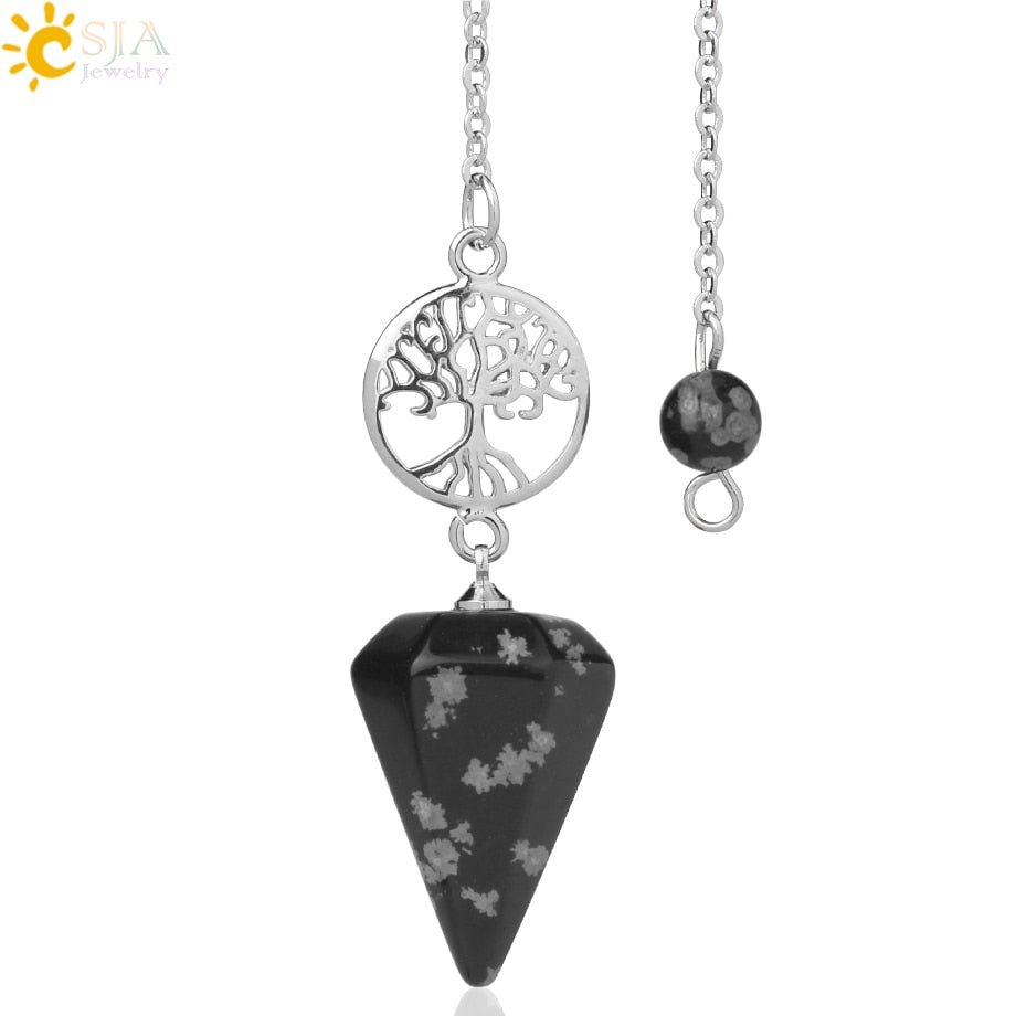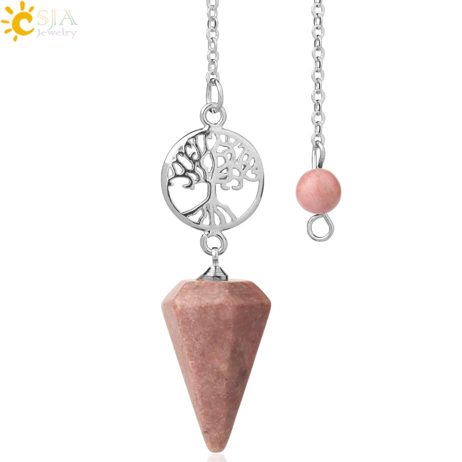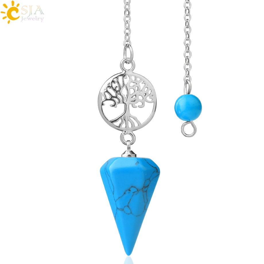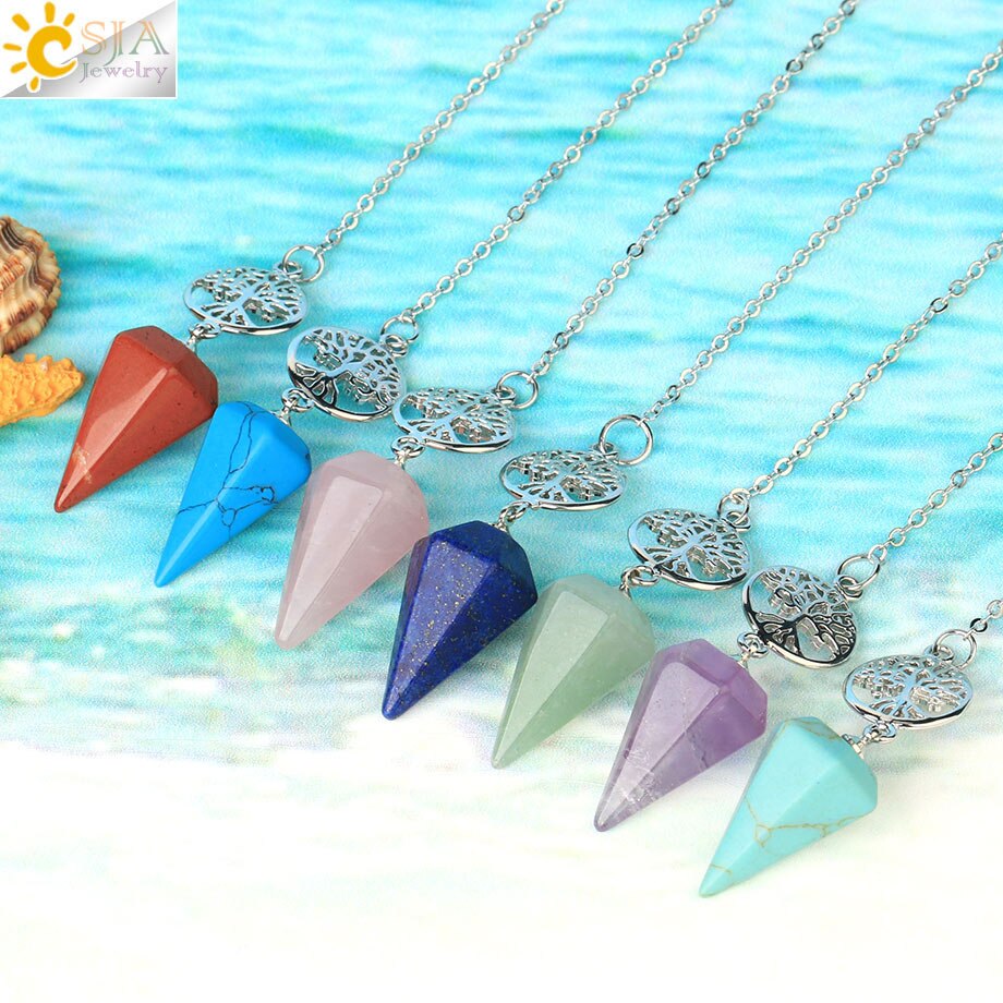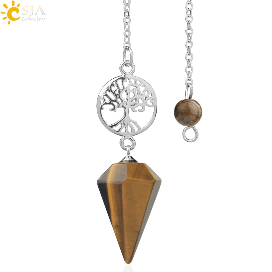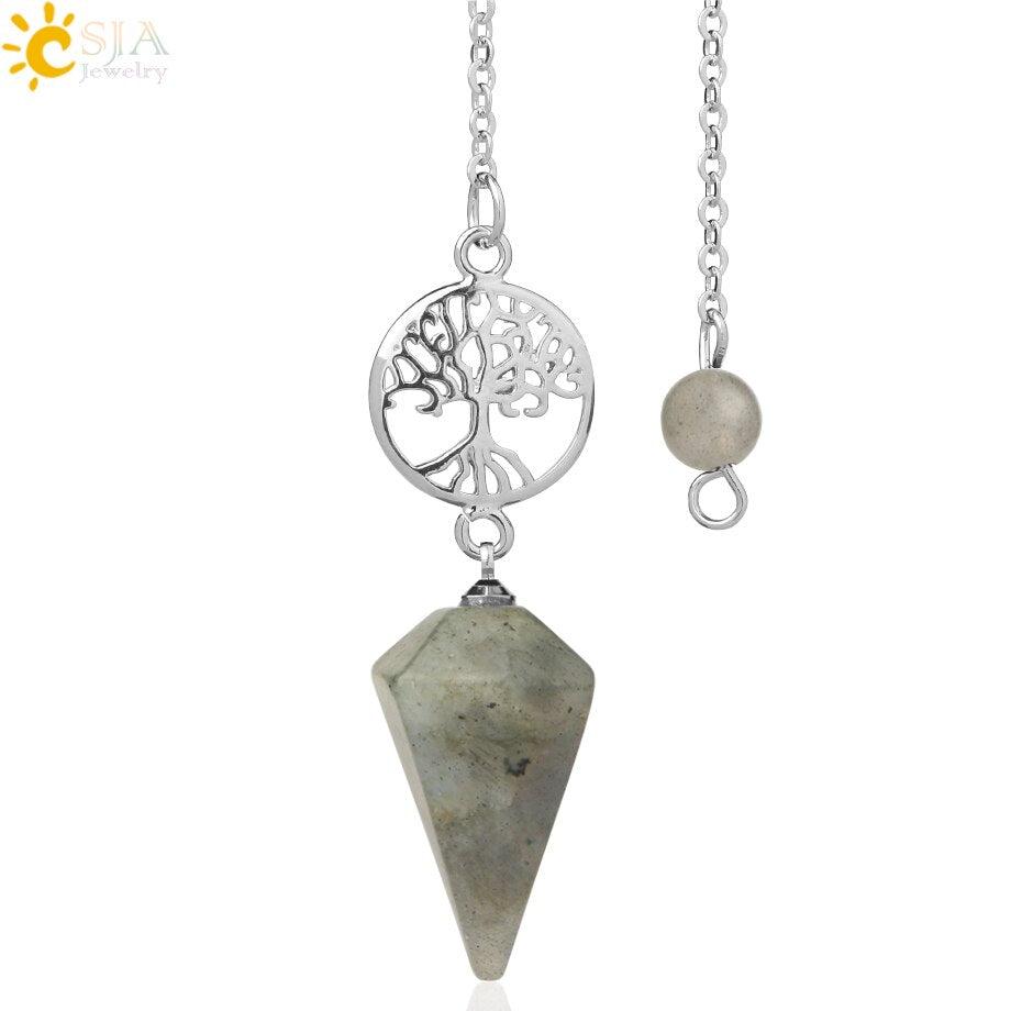 8,5 Zoll versilberte Lebensbaum Pendelkette, Chakra Stein Anhänger Halskette Baum des Lebens.