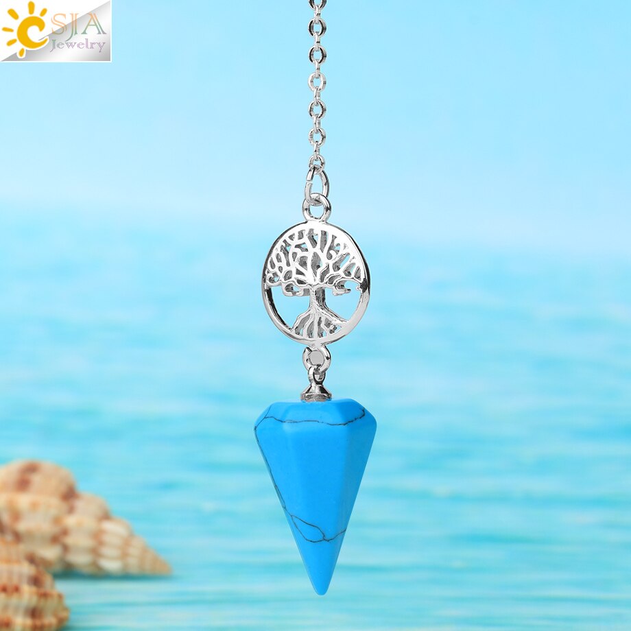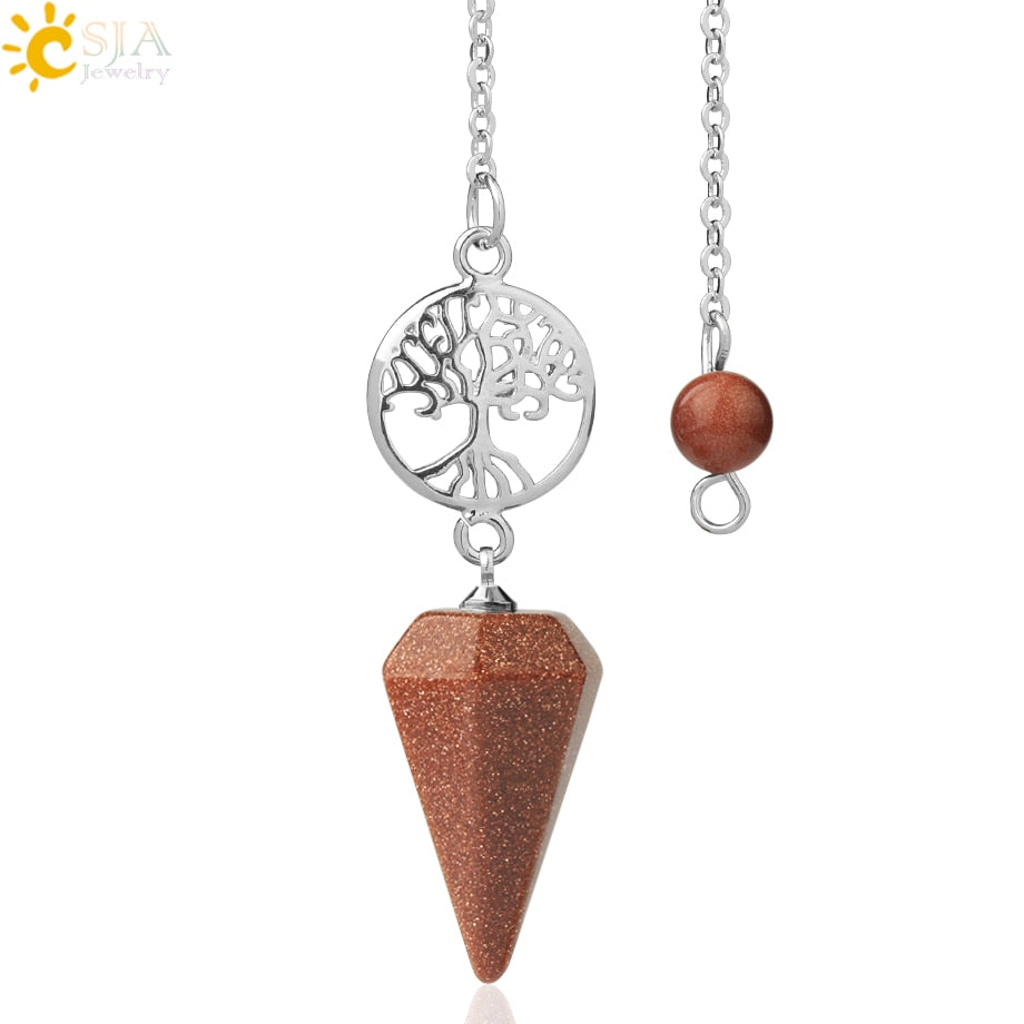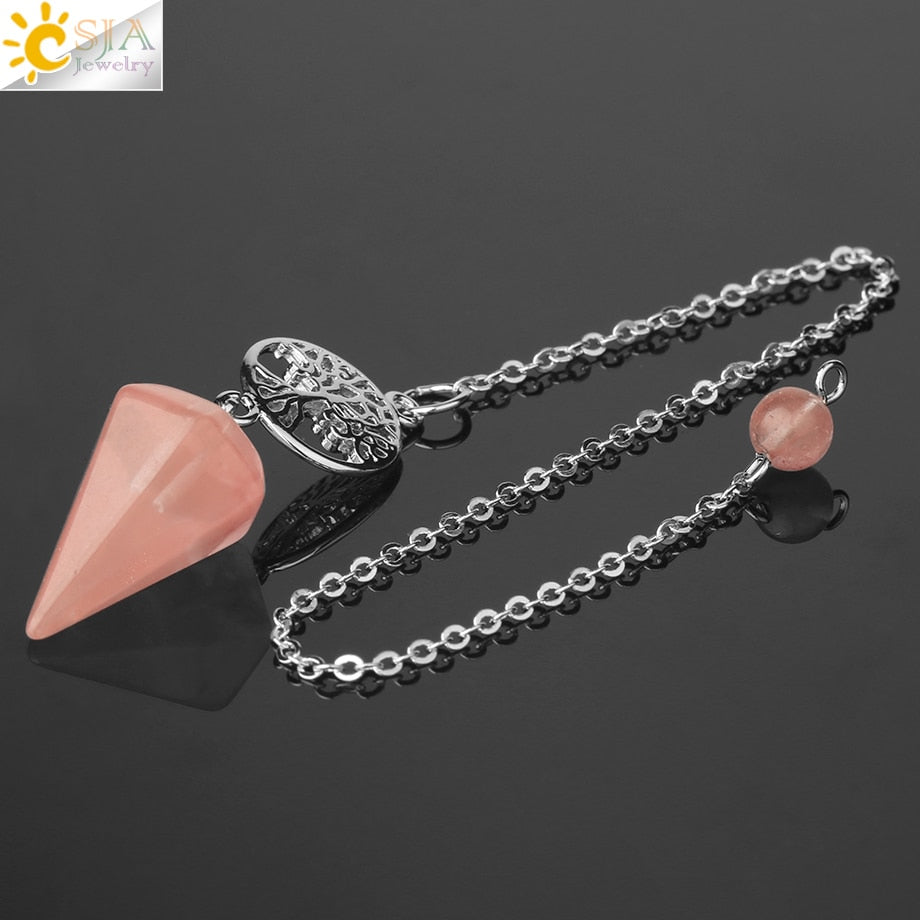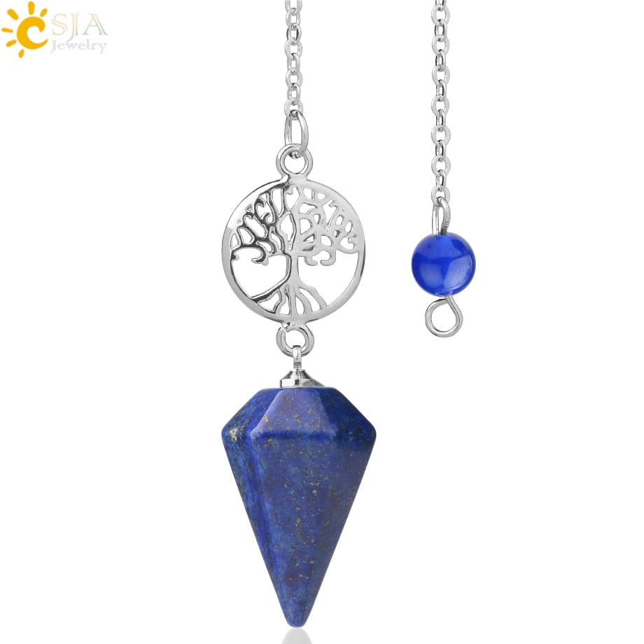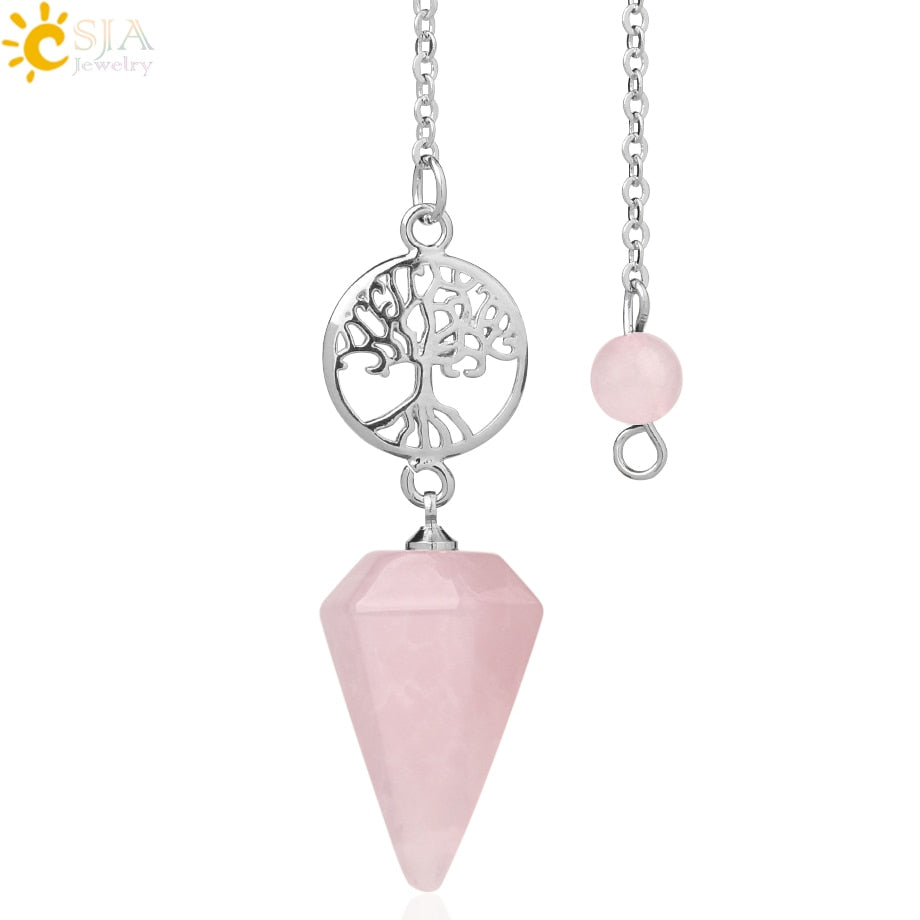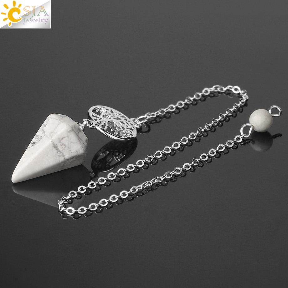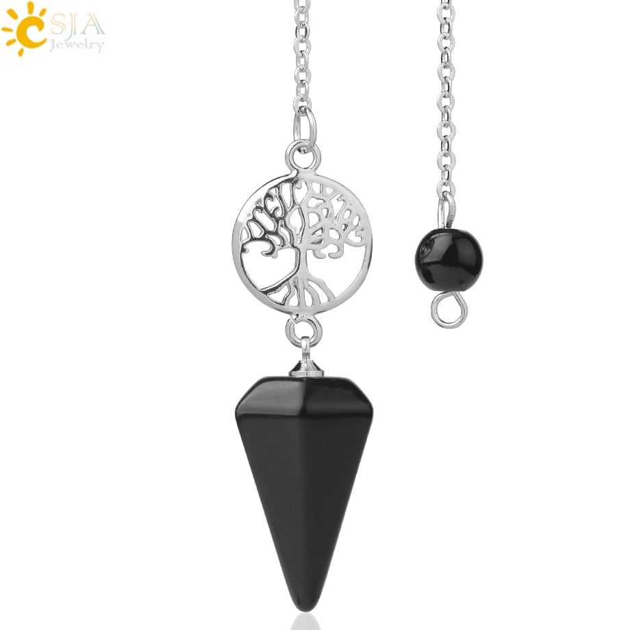 8,5 Zoll versilberte Lebensbaum Pendelkette, Chakra Stein Anhänger Halskette Baum des Lebens.