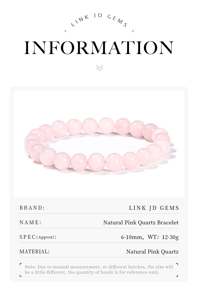 JD Naturstein Rosa Rosenquarz Kristall Perlen Armband Frauen