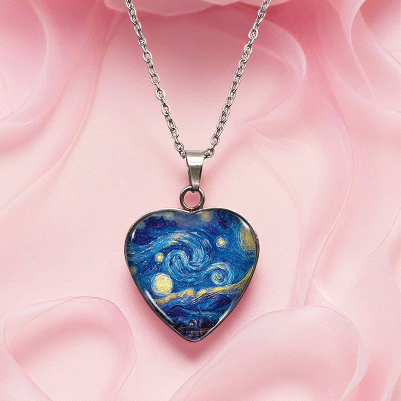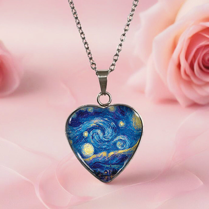 ELEGANTE GLAS?ERLENKETTE MIT STERNENNACHT MOTIV ANHÄNGER